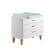 Commode avec 3 vastes tiroirs de taille identique et à fermeture silencieuse qui évite de pincer ses petits doigts.
