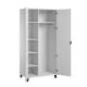- Partie droite de l'armoire : deux tringles suspendues, 1 barre supérieure fixe et 1 barre réglable en hauteur