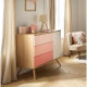 Commode à langer / commode bébé Sauthon : Commode 1 porte et 3 tiroirs Seventies - Sauthon - Rose et blanc