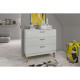 Cette commode est conçue pour offrir un espace de rangement pratique et esthétique pour la chambre de votre enfant. Avec ses tiroirs spacieux et sa fabrication à partir de matériaux de haute qualité, elle allie fonctionnalité et durabilité pour répondre aux besoins des jeunes utilisateurs. Son design blanc classique s'harmonisera facilement avec différents styles de décoration.