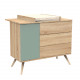 Prêt pour un saut dans le temps ? Cette commode de la collection Seventies va vous transporter dans une belle ambiance rétro et vintage. Pieds en bois coniques obliques, façades de tiroirs teintées dans un décor chêne doré, porte laquée en sauge : tous les codes du mobilier rétro sont réunis dans cette commode. Vous allez également adorer ses volumes : trois tiroirs et une porte derrière laquelle se cache une tringle. Toutes les petites affaires de bébé y seront bien organisées ! Dotés du système "pousse-lâche", les fermetures des tiroirs et de la porte sont sécurisées et facilitées. Un plan à langer de la même collection pourra être fixé sur le dessus de la commode (non inclus), vous aurez ainsi tout à portée de main.