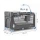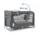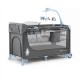 - Accessoires : plan à langer, rangement pour couches, carrousel son et lumière avec 3 jouets, matelas, sac de transport avec ouvertures pour les roues