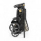 - Pliage super compact. La poussette se déplie et se plie d’une seule main et avec une unique commande centralisée sur le guidon, afin de ne jamais avoir besoin de se baisser. Elle tient debout une fois pliée. Le châssis se plie avec le hamac réversible.