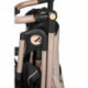 - Pliage super compact. La poussette se déplie et se plie d’une seule main et avec une unique commande centralisée sur le guidon, afin de ne jamais avoir besoin de se baisser. Elle tient debout une fois pliée. Le châssis se plie avec le hamac réversible.