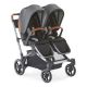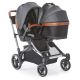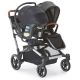 - Poussette simple convertible en poussette double côte à côte pouvant accueillir un ou deux enfants en y associant une nacelle ou un siège supplémentaire (nacelle et siège supplémentaire vendus séparément)