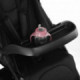 La poussette possède de nombreux équipements : un frein stop&go pour bloquer et débloquer rapidement les roues quel que soit le type de vos chaussures, un système pour plier et déplier la poussette en un seul mouvement et quelques accessoires pratiques comme un garde-corps sous forme de plateau (pour jouer ou les repas), un porte-gobelet, un couvre-jambes et un habillage pluie. Jusqu'à 15 kg.
