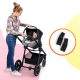 - 2 pochettes (pochette extérieure avec fermeture éclair pour y ranger un téléphone et pochette intérieure près des jambes de l’enfant pour d’autres petits objets des parents ou du petit, par exemple une tétine)
