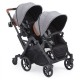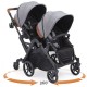 - Nouvelle poussette double avec la particularité d’avoir 6 roues, les roues arrières (silicone) permettent une maniabilité impressionnante tourne à 360 °et aucun effort pour monter les trottoirs, stabilité accrue.