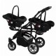 Poussette double Twinni Premium + 2 nacelles + 2 Sièges auto Black