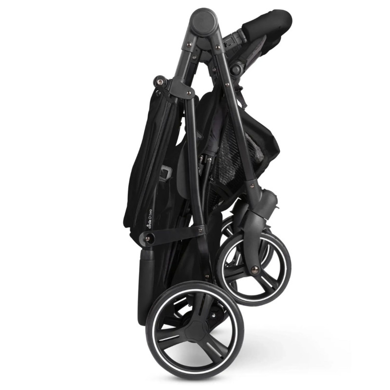 La poussette D Two est parfaite pour les familles avec deux enfants - elle apporte de la joie et de la facilité dans la vie quotidienne avec des frères et sœurs ou des jumeaux. Les sièges sont placés côte à côte et offrent le même confort et le même espace aux deux enfants. Que ce soit pour des jumeaux ou des frères et sœurs d'âges différents, le D Two rend chaque sortie décontractée et flexible. Les deux sièges sport peuvent être réglés individuellement et indépendamment l'un de l'autre. Les dossiers offrent cinq positions différentes, dont une position allongée à plat pour un maximum de confort. Le système de harnais innovant HappyBelt® et les arceaux de sécurité rembourrés assurent une sécurité maximale. Pratique : sous le repose-pied se trouve une aide à l'entrée qui permet aux enfants d'entrer plus facilement dans la poussette de manière autonome. Deux paniers à provisions spacieux avec une ouverture latérale zippée offrent beaucoup de place pour les achats et les ustensiles de bébé. Le chargement et le déchargement sont ainsi particulièrement faciles. Grâce à la suspension de l'essieu arrière et à la direction facile, la D Two est agréable à manœuvrer, même avec deux enfants à bord. Il offre un confort de conduite sur tous les terrains et franchit les passages étroits avec facilité. Même dès la naissance, la D Two est un excellent choix : avec les nacelles en option, tu peux déjà l'utiliser pour les nouveau-nés. Les sacs de transport disposent de parois renforcées, d'une doublure intérieure douce et d'une protection hivernale avec fermeture éclair qui garde ton bébé au chaud et en sécurité. Particulièrement pratique : le D Two se plie d'une seule main pour une poussette double, ce qui permet de gagner de la place. Il est ainsi rapidement rangé et prêt pour la prochaine aventure. Avec la D Two, tu es parfaitement équipé pour la vie quotidienne avec deux enfants, qu'il s'agisse de jumeaux ou de frères et sœurs. La poussette offre des fonctions bien pensées, un grand confort et des détails pratiques pour un voyage sans stress.