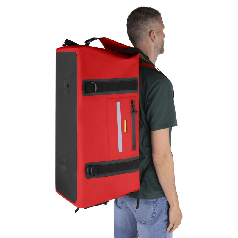 - Grand compartiment principal avec fermeture éclair étanche avec 2 poches latérales : 1 poche filet avec fermeture éclair et 1 poche amovible fixée par velcro